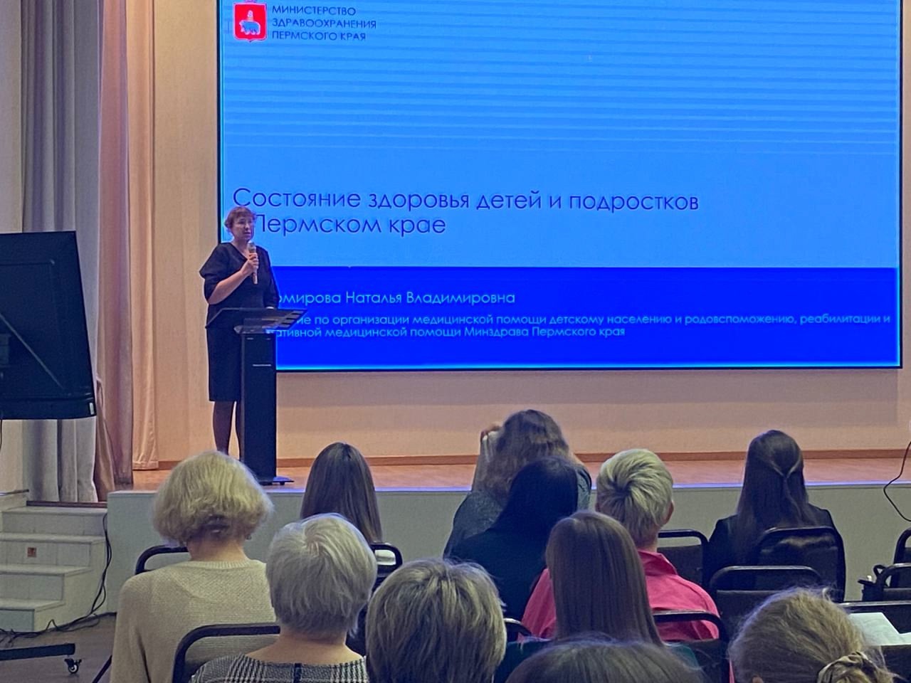 С пленарным докладом о состоянии здоровья детей в Пермском крае выступила представитель Минздрава Пермского края Наталья Владимировна Долгомирова. Она отметила снижение роста рождаемости по сравнению с 2023 годом.