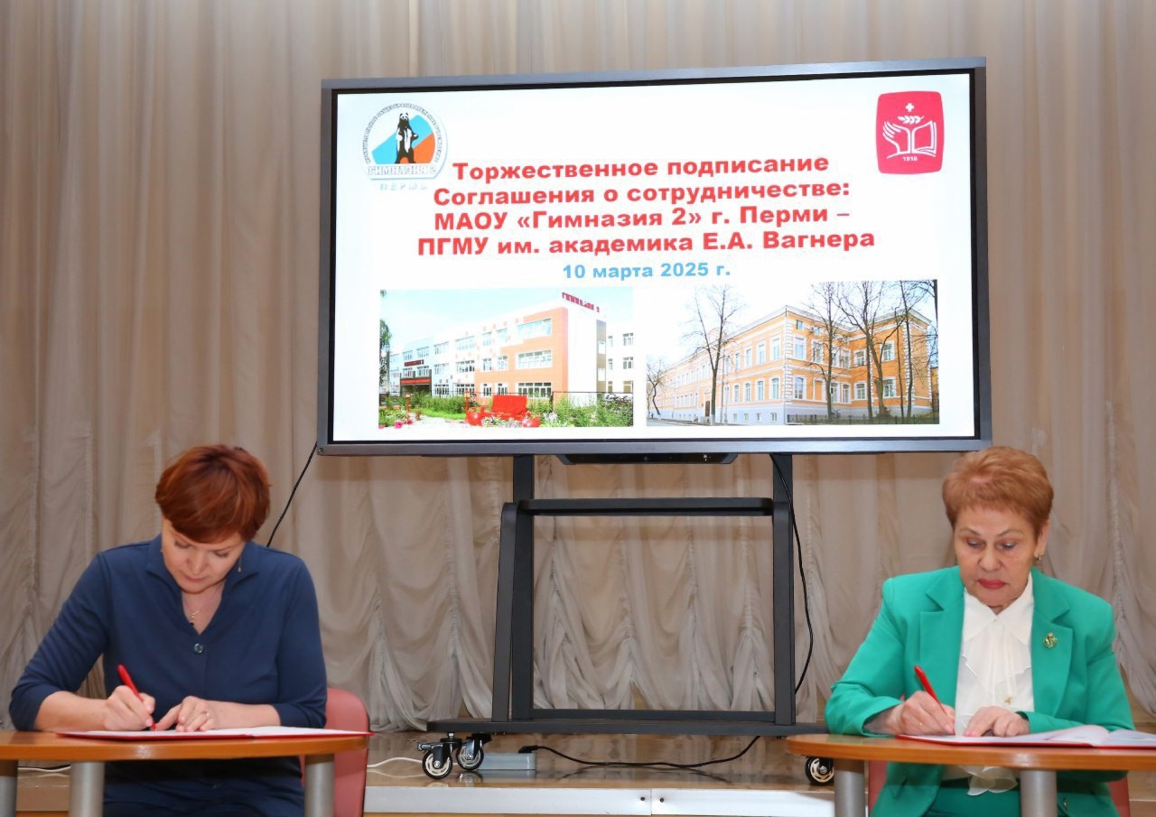 Мы рады сообщить о подписании Соглашения о сотрудничестве между ПГМУ им. академика Е.А. Вагнера в лице ректора Благонравовой А.С и МАОУ «Гимназия №2» г. Перми в лице директора Сухановой Л.А.