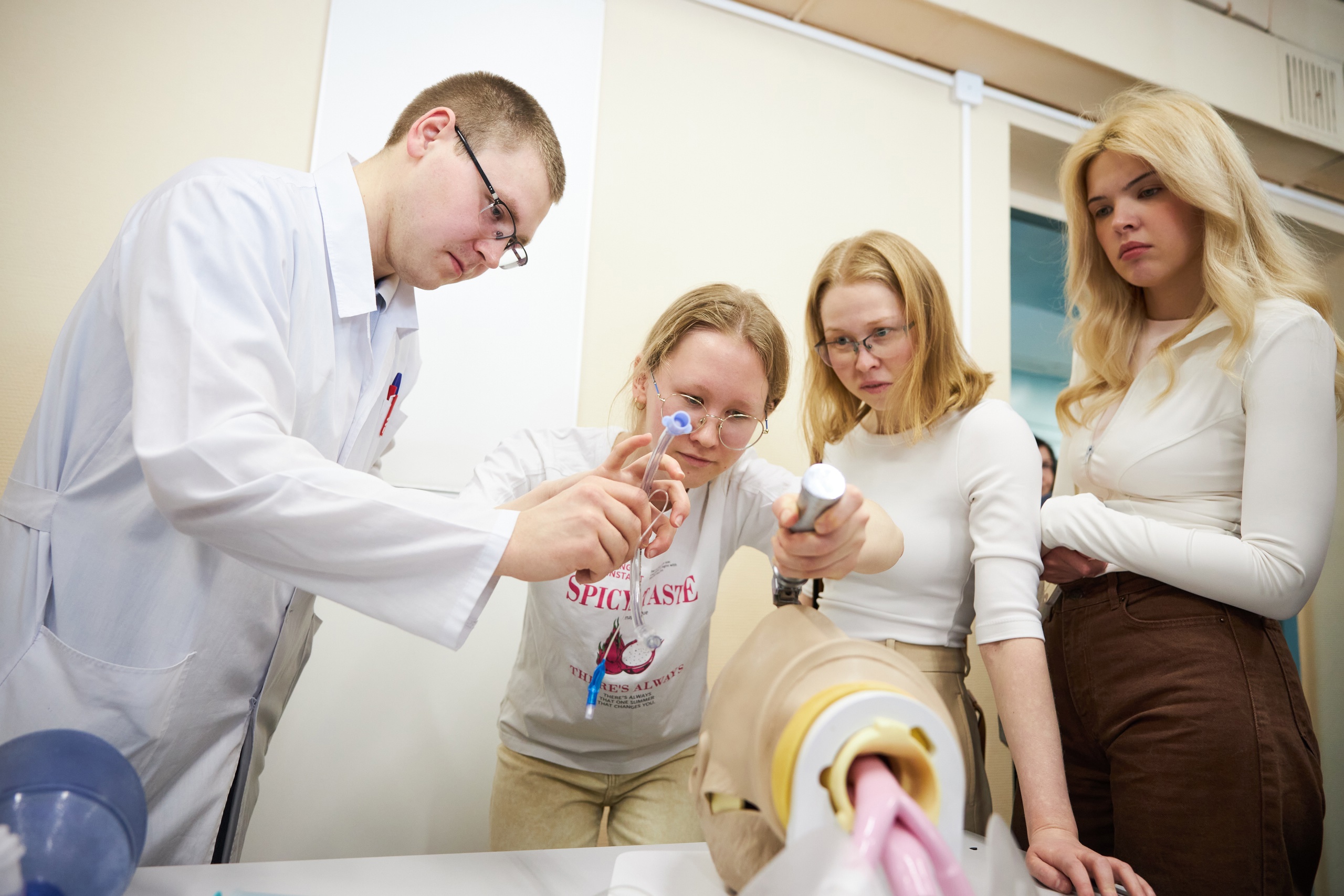 Будущие абитуриенты смогли погрузиться в профессию и почувствовать себя врачами через медицинские практикумы и хирургические мастер-классы, которые проходили в рамках ДОД.