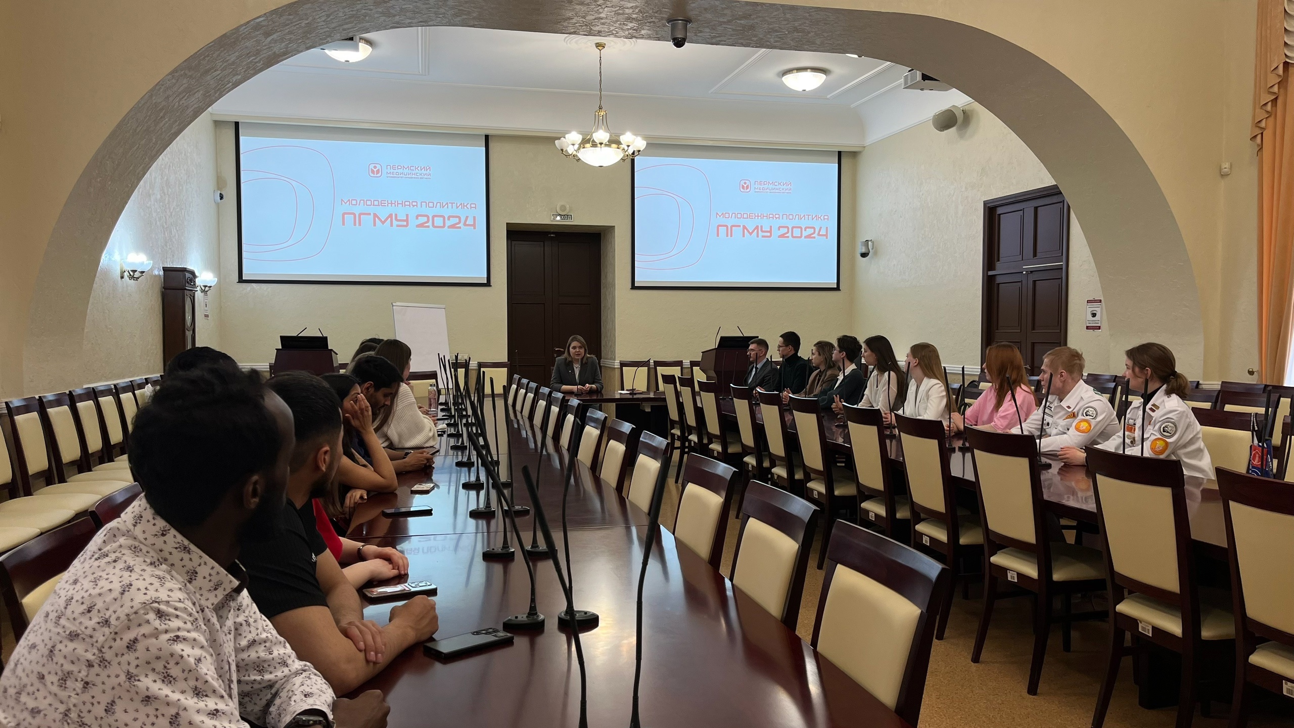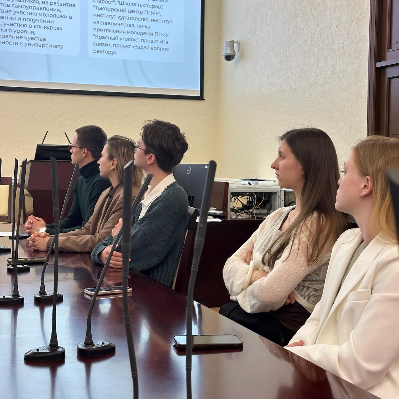 Проректор по воспитательной работе и молодёжной политике ПГМУ Мария Александровна Дворецкая презентовала ключевые направления развития до 2030 года. На встрече собрались представители всех студенческих объединений вуза, молодые сотрудники и преподаватели.